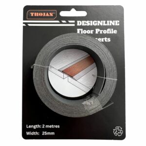 Trojan Designline wood effect veneer inserts are used with the coverstrip and or adjustable reducer.  Simply select the veneer insert, remove the adhesive cover on the aluminium profile and apply. The inserts are the latest in interior design wood colours and therefore match a wide range of flooring colour tones. We can also match all your available wood & laminate floor colours!
