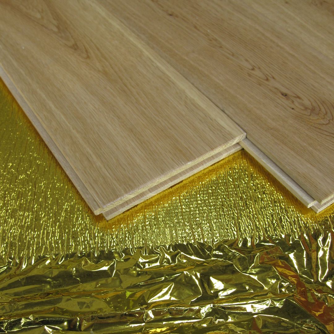Trojan Silent Gold underlay is a heavy weight smart foam with a gold foil barrier that comes with a adhesive tape to seal all joints. Suitable for laminate, semi-solid and engineered flooring. Thermal resistance is RB=0.088m2K/W which means that the tog rating will be 0.88togs. For underfloor heating systems it is recommended that the heat transmission resistance of floor underlay must not exceed a value of RB=0.15m2K/W.